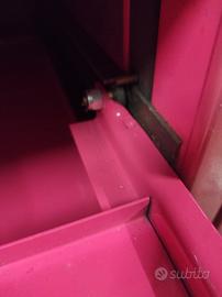 Struttura in metallo, utilizzata come archivio accessori. Condizioni discrete, normali segni d’uso e su alcuni punti colore mancante. Dimensioni: 70 x 70 x 103 cm (L x P x H)