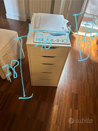 Cassettiera in legno laccato bianco 5 cassetti Larghezza 36 cm Profondità 58 cm Altezza 70 cm