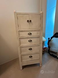 Cassettiera in legno stile shabby chic / provenzale, finitura decapata color crema.
