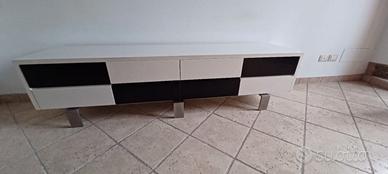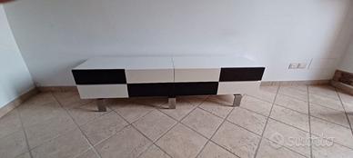 Cassettiera bianca e nera 201 x 51 x 47 h - basamento in acciaio inox satinato, struttura in truciolare nobilitato, frontali cassetti e top in MDF laccato