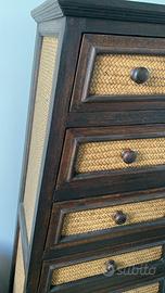 Cassettiera piu mobiletto etnico, molto belli in legno Cassettiera h138 profondità 38 larghezza parte bassa 69 parte alta 32,5 Mobiletto H 52 prof 42 larg73