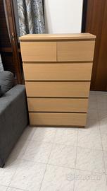 Vendo cassettiera in legno chiaro in stile moderno, perfetta per camera da letto, soggiorno o ingresso. Il mobile è in ottime condizioni, solido e capiente. Composta da: - 2 cassetti superiori più piccoli - 4 cassetti grandi molto spaziosi Design pulito e minimal, si adatta facilmente a qualsiasi arredamento. Condizioni: Usata ma tenuta molto bene, senza difetti evidenti. Dimensioni (circa): Altezza: 110 cm Larghezza: 80 cm Profondità: 45 cm Ritiro: Ritiro a mano Per info o altre foto contattami senza problemi 🙂