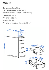 Cassettiera come nuova, usata pochissimo e tenuta benissimo. Sul sito Ikea si trova come: ALEX Cassettiera, marrone-nero, 36x70 cm Descrizione Ikea: Una cassettiera dal design semplice, che si adatta a diversi stili d'arredo. Puoi usarla da sola o insieme a una scrivania, e collocarla in qualsiasi area della stanza, infatti è rifinita anche sul dorso.