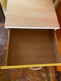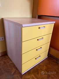 Cassettiera in legno con 4 cassetti. Colore giallo.