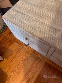 Bellissima cassettiera in legno sabbiato sul blu, pezzo unico della Cyrus Company con sei profondi cassetti . Gambe in acciaio dí colore blu. Dimensioni 99x45 h. 50 cm