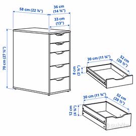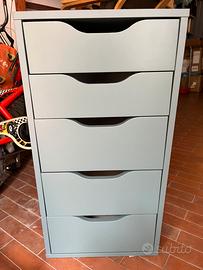 Cassettiera Alex Ikea color petrolio. Le misure sono quelle riportate nello schema in foto. Ottime condizioni generali. Scambio a mano.