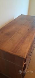 Cassettiera di almeno 60 anni da restaurare. Mancano chiavi per aprire cassetti e segni di usura. Misure: Altezza 102 cm ca. Larghezza 132 cm ca. Profondità 58 cm ca.