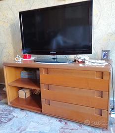Cassettiera Molteni in legno con tre cassetti e vano a giorno, utilizzabile come porta televisore.