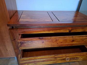 Cassettiera, porta tv, comò, in legno massiccio di teak 3 cassetti misure h. 66 x l. 90 x p. 45 cm