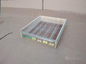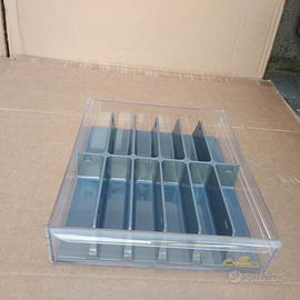 Cassettiere da 3 cassetti larg.32,2 alt.24,5 prof.37cm Cassetti 30x7x35,5cm Fornibile a scelta con separatori fissi o regolabili da 12 scomparti. Ideali per matassine filo o minuterie qualsiasi. Trasporto a carico dell'acquirente. La foto con le matassine è puramente indicativa dell'utilizzo, la cassettiera viene fornita vuota.