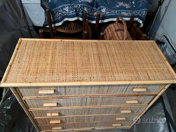 Bellisima cassettiera in vimini anni 70 80, tenuta perfettamente, 5 cassetti capienti, misure hxlxp 105x95x42. No offerte ridicole e perditempo