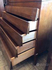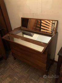 5 cassetti più ribalta, triplice specchio utilizzabile come mobile da trucco.