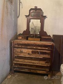 Da restaurare. Originale anno 1920. Ottimo legno. Specchiera intatta. Ripiano in marmo bianco Carrara, incastonato sul ripiano cassettiera.
