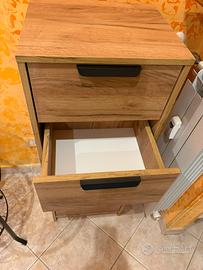 Cassettiera in legno scuro con maniglie nere, profonda 35 cm, larga 41 cm e alta 108 cm. Ritiro zona roma centocelle