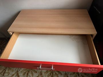 Comó in legno chiaro e laccatura rossa , perfette condizioni ad eccezione angolo destro dei cassetti interni come si vede da foto. Ma struttura intatta e perfetta