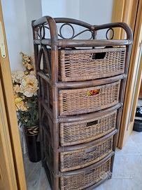 Cassettiera in vimini e bambù in buone condizioni. h 1,17, 51 larghezza, 42 profondità