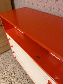 Vendo cassettiera con anta a ribalta per farla diventare una scrivania Come in foto, con qualche segno di usura 4 cassetti grandi e 2 cassettini laterali scrivania Ritiro al primo piano Misure: Lunghezza 90cm Profondità 40 cm Altezza 100 cm
