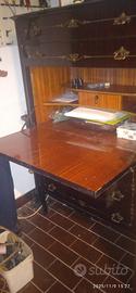 Vendo Cassettiera scrittoio stile cinese usato laccato marrone scuro quasi nero ribaltina con cassettino interno e legno con lavorazioni Visibili a Legnano (Mi)