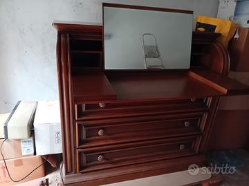 secretaire in noce con 3 cassetti e antina scorrevole al cui interno si trovano 2 cassettini e specchiera estraibile e richiudibile che diventa scrittoio. buone condizioni. solo ritiro a mano.