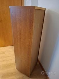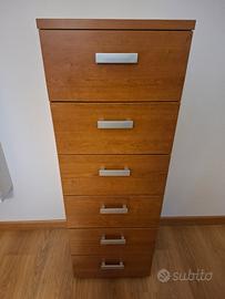 Vendo cassettiera- settimino con sei cassetti color legno. Altezza 132 cm, profondità 37,5 cm, larghezza 45 cm.