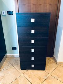 Settimino cassettiera con 6 cassetti scorrevoli in wenghe nero. Buono stato, ma con alcuni segni. Misure 117x40x54 cm Solo ritiro di persona