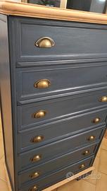 Bellissima cassettiera rinnovata di colore grigio scuro.