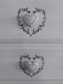 cassettiera 6 cassettini in legno stile Shabby chic pomelli a forma di cuore altezza 112 profondità 30 con pomelli 32 larghezza 40