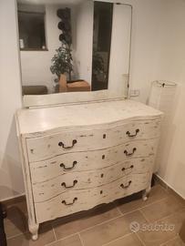 cassettiera shabby chic, vintage non spedisco lunghezza 116 altezza piano 98, specchiera 178 profondità 50