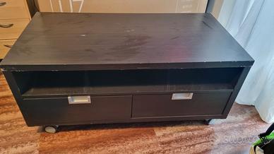 Mobile soggiorno per TV con due cassetti. Il mobile è ben fatto, molto solido e in buone condizioni, presenta alcuni graffi sulla parte superiore e sulle parti esterne. Le misure sono : 120 x 60 x 54 di altezza comprese le ruote che possono essere rimosse. Ritiro a carico dell'acquirente in zona monteverde nuovo.