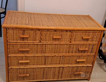 Cassettiera in bambù e vimini con specchio