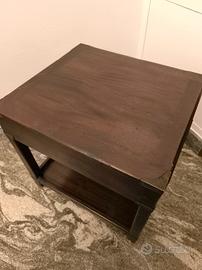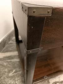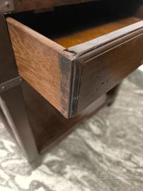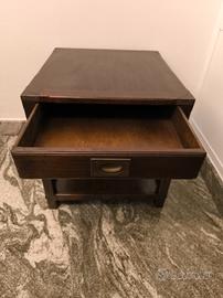 Tavolino con cassetto in stile marina originale inglese, realizzato in massello di mogano, completa di ripiano porta oggetti. Parte di un lotto di mobili acquistati negli anni 70 da un mobilificio in Torino che importava arredi originali prodotti in Inghilterra.
