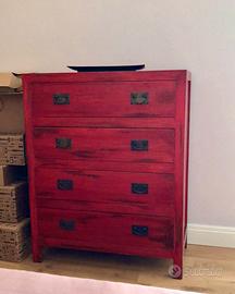 Cassettiera in teak Misure cm 80x40x100 Disponibile una in colore giallo e una in rosso.
