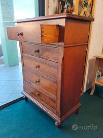 Cassettiera in legno tinto noce con 5 cassetti, misure cm 80 x 40 h 108