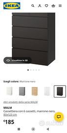 Cassettiera con 6 cassetti in buono stato ripiani con guide in ferro, dim. colore nero, dim. 80 x 48 x 123 cm altezza, prezzo 80 euro, piano terra, zona corso Venezia Torino Nord, possibilità di trasporto.