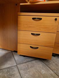 cassettiera da ufficio in legno per scrivania ottime condizioni color ciliegio Dotata di comode rotelle per spostamento. Con chiave. misure in cm. 42 larghezza 58 altezza 56 profondità