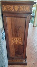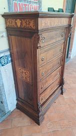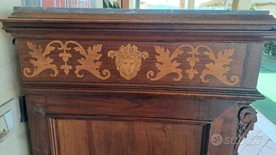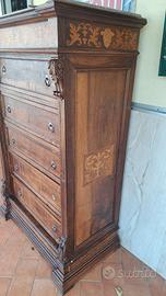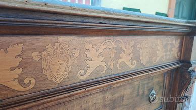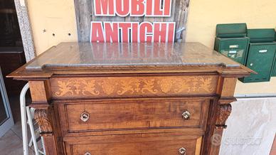Cassettiera fine 800 italiana Stile Umbertino Il mobile presenta 6 ampi cassetti e il piano superiore è in marmo grigio. Mobile con notevoli decorazioni a intarsio su tutti i lati Misura 105x55 altezza 160 PREZZO COMPRENSIVO DI RESTAURO M&P Antichità siamo un negozio specializzato in antiquariato vintage e shabby vendita al dettaglio e all ingrosso scarichi settimanali oltre 500 articoli in negozio, abbiamo una vasta scelta di como comodini tolette armadi letti vetrine vetrinette credenze servanti angoliere librerie tavoli tavolinetti sedie poltrone poltroncine divani lampade lampadari tappeti scrivanie scrittoi secretere ribaltine consolle quadri cornici specchi cassapanche bauli oggettistica varia idee regalo e molto altro ci troviamo a Roma zona Castelverde via Massa San giuliano 26b POSSIBILITÀ DI CONSEGNA E SPEDIZIONE IN TUTTA ITALIA PER INFO LUCA