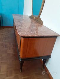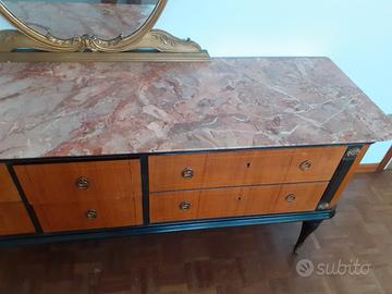 Cassettiera in legno con intarsi nero e ottone anni 50 in ottimo stato