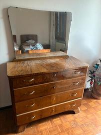 Vendo cassettiera in legno completa di specchio, capiente e dallo stile vintage.Struttura solida con più cassetti spaziosi.