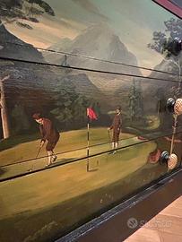 Cassettone Inglese Vintage in Legno dipinto a mano con 4 cassetti con pomoli. Colore base nero. Alcuni segni di usura su alcuni pomoli. Misure 104x52xh91