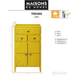 Cassettiera stile vintage in ottime condizioni. Marca: Maisons du Monde. Modello: Thelma Dimensioni in figura dedicata. Ritiro a carico dell'acquirente. L'arredo si trova al 4° piano con ascensore.