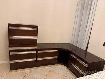 Regalo cassettiere per camera da letto, componibili e disposte ad angolo (vedi foto). In buone condizioni. Da smontare e ritirare. Ogni cubo largh. 59 cm. profondità 46 cm. Altezza 55,5 cm. Angolare componibile anche in altezza .