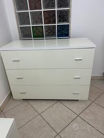 Per inutilizzo vendo coppia cassettiera e coppia comodini bianchi con misure