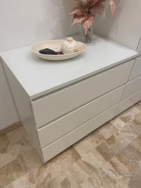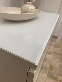 Sopra alla cassettiera più piccola c’è uno steso di vetro removibile volendo da appoggiare sulla cassettiera più grande.