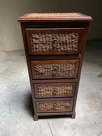 Una cassettiera bassa combinata con cassettiera alta in stile etnico.