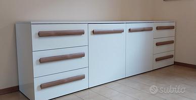 Vendo due cassettiere di colore bianco laccato lucido con maniglie in legno color noce.