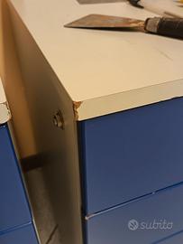 Tre cassettiere per ufficio da 4 cassetti ciascuna, colore grigio/blu, misure cm. 56x56x altezza 66 comprese ruote oppure 60 senza ruote. Presentano qualche segno di usura come da foto. Prezzo per acquisto in blocco 100 euro oppure 40 euro ciascuna. No spedizione. Ritiro a mano a Trezzano Rosa.