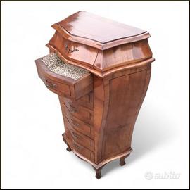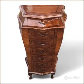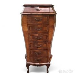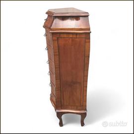 Questa elegante cassettiera classica bombata in noce è un pezzo di arredamento funzionale e raffinato. Realizzata artigianalmente con cura meticolosa, presenta sei ampi cassetti per una generosa capacità di archiviazione. I pomoli e i dettagli ornamentali in metallo conferiscono un tocco di eleganza, mentre le forme curve e i piedini ricurvi aggiungono un fascino vintage. Questa cassettiera è perfetta per conservare biancheria, accessori o qualsiasi oggetto di cui si desidera tenere traccia in modo ordinato. Le sue linee armoniose e il legno pregiato la rendono un'aggiunta di classe a qualsiasi ambiente, dall'ingresso alla camera da letto.
