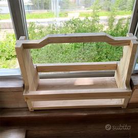 Bellissima cassettina realizzata artigianalmente in legno, per bottiglie (ottimo regalo per amanti grigliate, pic nic e non solo). Le pareti hanno spessore di circa 1,6 cm ed è assemblata con incastri e spine Misure esterne: 43 x 20 h35 cm circa - possibile realizzazione con misure a richiesta