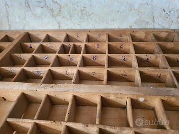 vendo 3 cassetti da tipografo originale anni 50 no riproduzione con scomparti per le lettere stato usato convertibile in qualcosa di originale ( tavolino quadro porta monete ecc. ) misure cm. 55×80×7 non spedisco ritiro in zona prezzo 20 l'uno tutti assieme 50