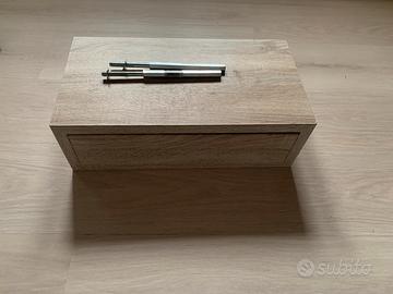 cassetto in legno effetto rovere chiaro, completo di coppia di guide metalliche scorrevoli (visibili in foto). Ideale come ricambio o per progetti fai-da-te, mobili su misura o ristrutturazioni.